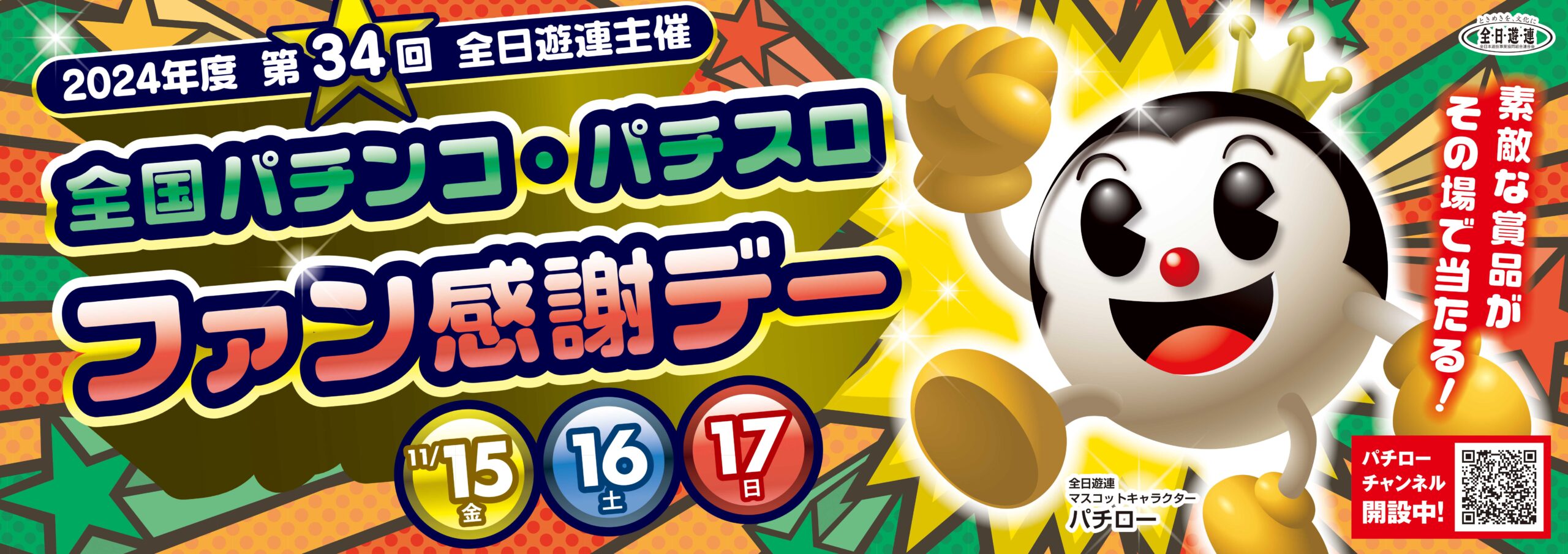 全日遊連主催【全国パチンコ・パチスロファン感謝デー】のお知らせ 本年もやってまいりました! 11月15日(金)~17日(日)の3日間 全日遊連主催 【全国パチンコ・パチスロファン感謝デー】 開催です!! KIBUN GROUP4店舗も参加致します。 開催の3日間は豪華賞品が当たるかも!?!?! クジ引き開催です(*^^)v ※抽選時間は各店舗でご確認下さい 皆さまのご来店を心よりお待ちしております(#^.^#) お知らせ一覧に戻る>>