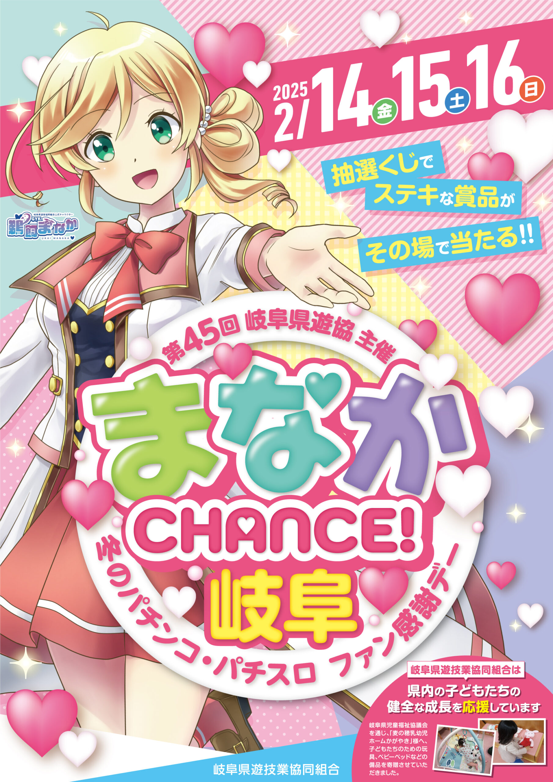 岐阜県遊協主催 【まなかチャンス】のお知らせ 岐阜県遊協主催 【まなかチャンス】のお知らせです 2月14日(金)~16日(日)の3日間 KIBUNグループもまなかチャンスに参加します! 豪華賞品が当たるかも!? 抽選くじがありますよ~(#^.^#) ※商品内容や抽選時間は各店舗でご確認下さい ご来店をお待ちしてま~す"(-""-)" お知らせ一覧に戻る>>